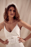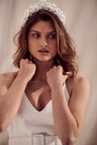 The majestic STELLA Crown is perfect for the bride seeking a statement piece to accompany her wedding day look. Hand woven onto wire with small crystals and semi-precious stones, this is truly an unforgettable headpiece.